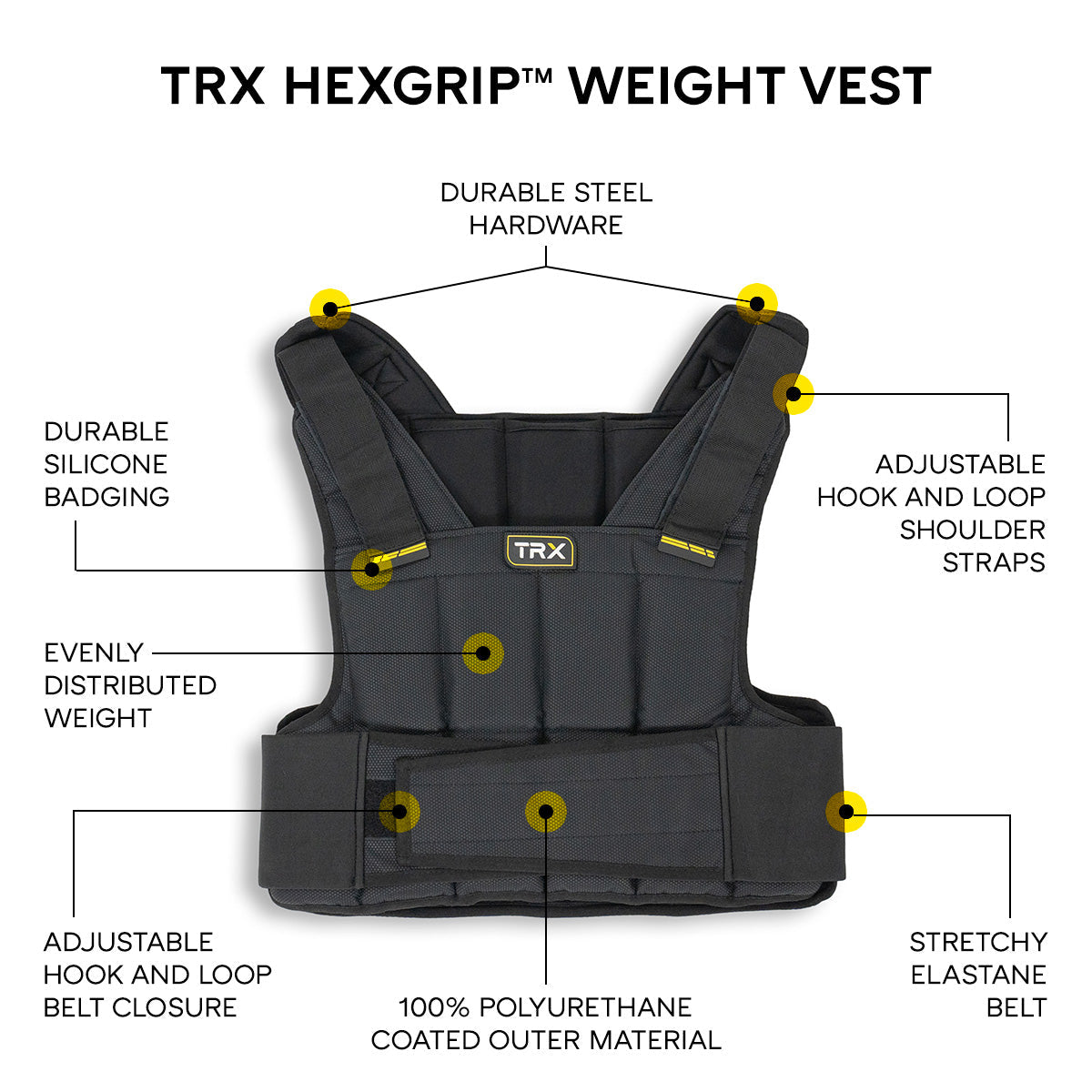 Built for durability and performance, the TRX HexGrip Weight Vest is engineered with patented Hex Node technology for a rugged, dirt-repellent, slip-proof design that stands up to the toughest workouts. The vest’s ergonomic fit, combined with multi-adjustable shoulder and waist straps, molds to your body for comfort and stability, allowing full freedom of movement. From strength-focused reps to sprints, the TRX HexGrip Weight Vest supports every move, helping you push further with confidence.